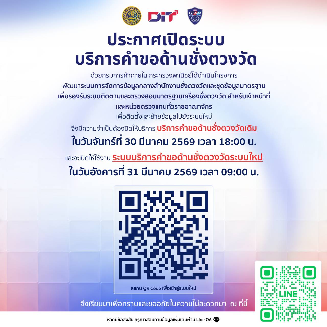 ประกาศเปิดระบบบริการคำขอด้านชั่งตวงวัด...