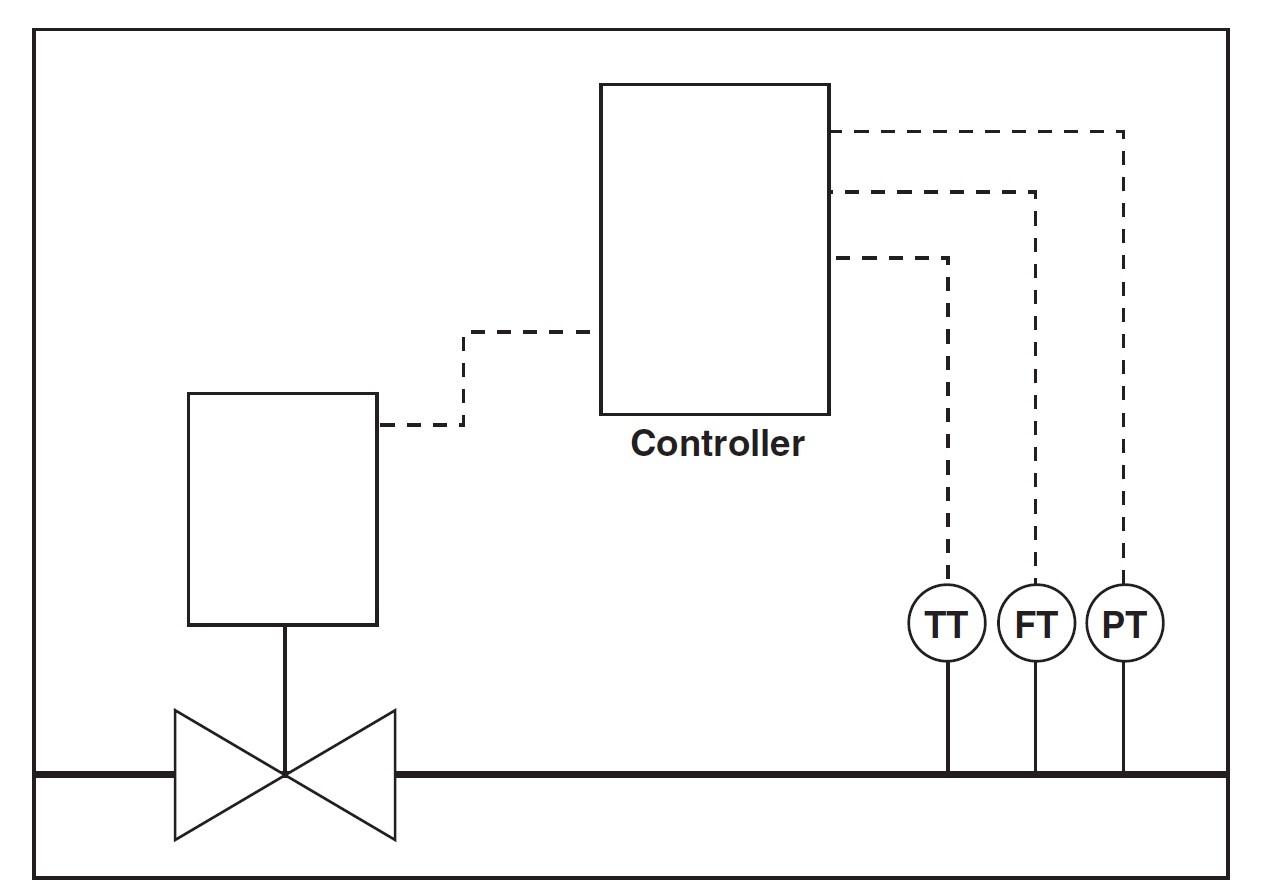เรามาดูรูปที่ 9 ซึ่งแสดงการควบคุมวงรอบปิด (Process control loop) เพื่อมาดูว่าวาล์วควบคุมทำอะไรในกระบวนการทำงานหนึ่งๆ จะเห็นได้ว่ามี 3 หน้าที่สำคัญหลัก (Function Blocks) คือ