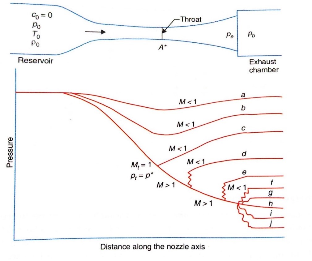 · หลังเกิด “Choked”(M > 1) และความเร็วของก๊าซด้านทางออก M > 1 (เส้น h)