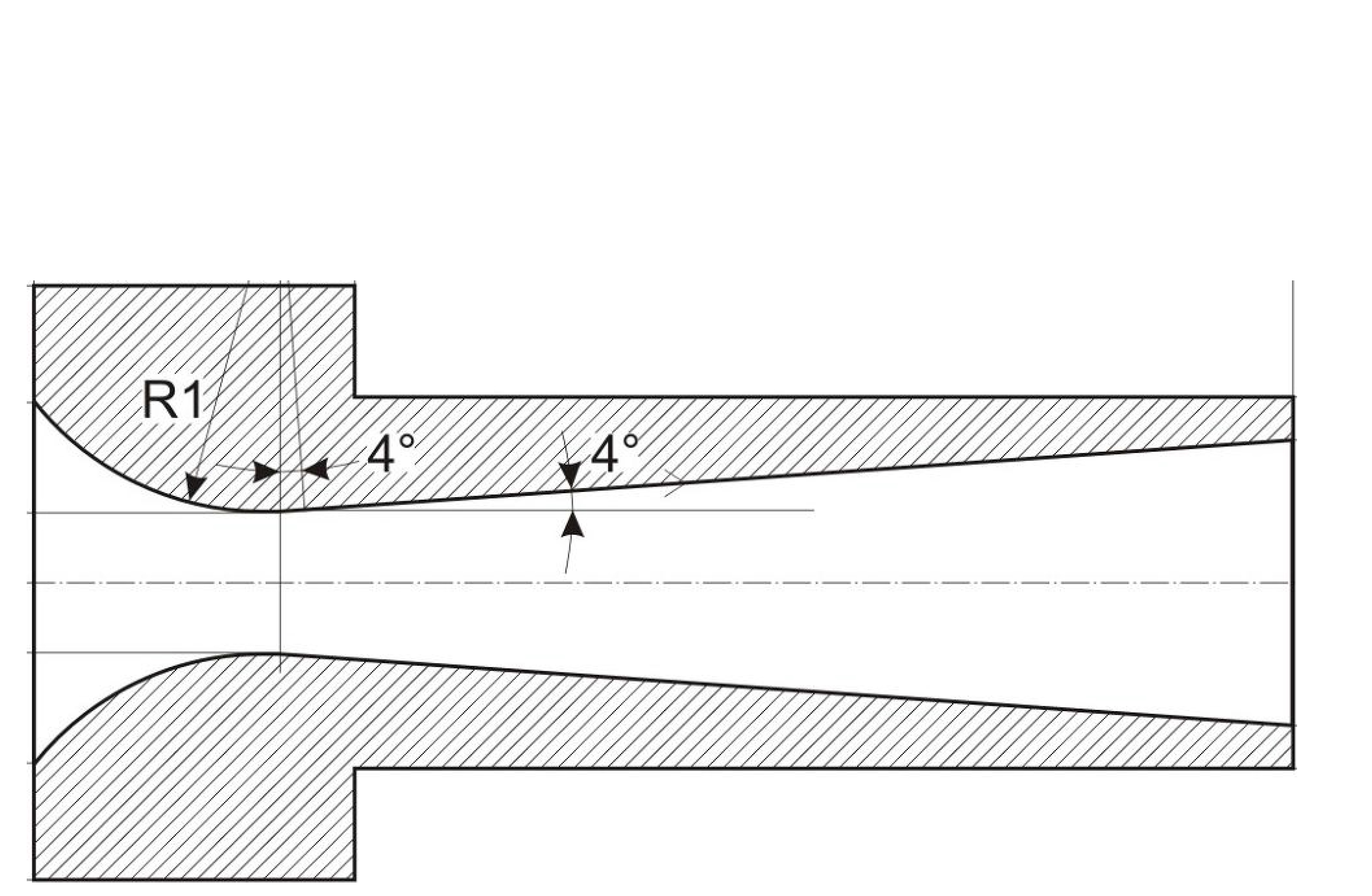 รูปที่ 26 ขนาดรูปร่างมาตรฐานของ Sonic Nozzle ตาม ISO 9300 Measurement of gas flow by means of critical flow Venturi nozzles