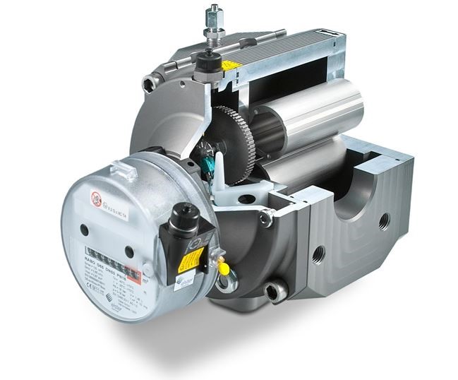 รูปที่ 4 มาตรวัดปริมาตรก๊าซแบบไดอะแฟรม, มาตรวัดปริมาตรก๊าซแบบลูกสูบโรทารี และมาตรวัดปริมาตรก๊าซแบบเทอร์ไบน์
